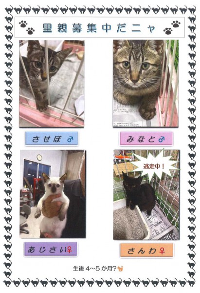 BlueCab 佐世保タクシーでは4匹の子猫を保護しております。 ※1匹ゲージから逃げて敷地内ですくすく成長中です。 猫の里親になっていただける方いらしゃいましたら お気軽にご連絡ください。 お問い合わせ先:0956-58-6300 佐世保タクシー総合事務所 担当:山口